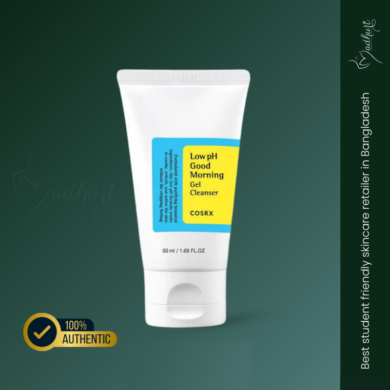 COSRX Low pH Good Morning Gel Cleanser gently removes impurities and excess oil while maintaining skin’s optimal pH balance. Formulated for sensitive and acne-prone skin, it refreshes and preps skin for the day with a gentle, non-drying formula. Available in 50ml and 150ml.