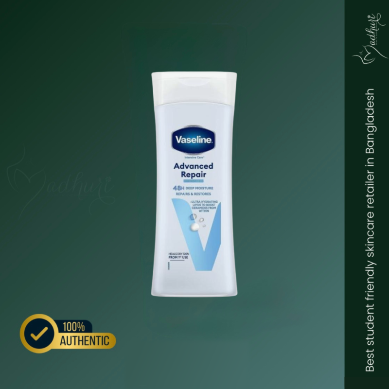 Vaseline Advanced Repair body lotion restores dry, rough skin with deeply moisturizing ingredients. Clinically proven to heal dry skin from first use.